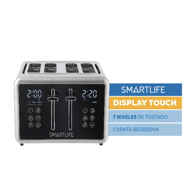 ¡Revolucioná tus mañanas! Mejora tu cocina con la innovadora tostadora Digital Touch para 4 panes de Smartlife. Equiparada con un display LED Touch y 7 niveles de tostado, garantiza el comienzo perfecto para tu día. - Cuenta Regresiva - Led digital touch - Función descongelar - Función recalentar - Cuerpo de acero inoxidable ¡Personaliza cada rebanada a tu gusto con la nueva tostadora con led digital touch de Smartlife! Perfecta para espacios pequeños, esta tostadora combina eficiencia y versatilidad. ¡Se adapta a cualquier hogar!